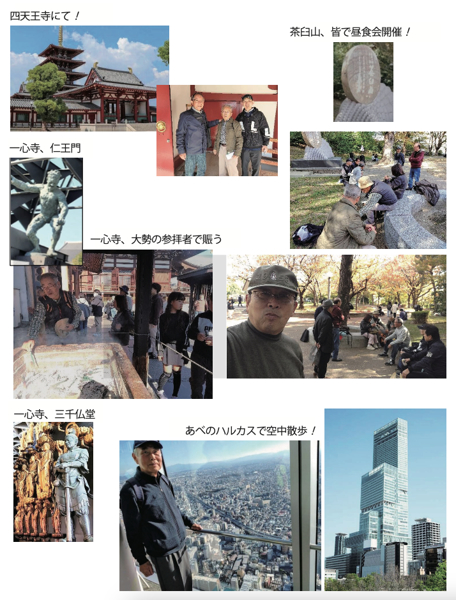 そして、その続きとして今回は飛鳥の都の世界への玄関口(中国・朝鮮半島等の玄関口)となる難波津(港)(現、大阪市役所・大阪市中央公会堂周辺の大阪湾から続く大川、淀屋橋下の川周辺)と当時の都を結ぶ、官が作った大道の途中を華やかに飾る、国家が作った最初の官寺としての「四天王寺」を中心に拝観し、次に現役の新しい形として現代に生きる仏教寺院としての「一心寺」、大坂夏の陣の真田幸村が陣を構えた茶臼山、最後に陰陽師、阿倍野清明の生誕地近くの300メートルの展望台を誇る、「あべのハルカス」を冬季とは思えぬ穏やかな晴天の下、和やかに見学することが出来ました。