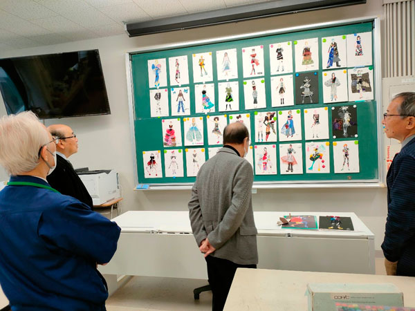 その後、デザイン科1年生の授業を見学させてもらい、直接制作中の作品について質問をしたり、作画の意図を聞かせてもらったり、なまの生徒たちの様子が分かり、真摯に取り組んでいる姿に「頑張っているなー!」と感動しました。