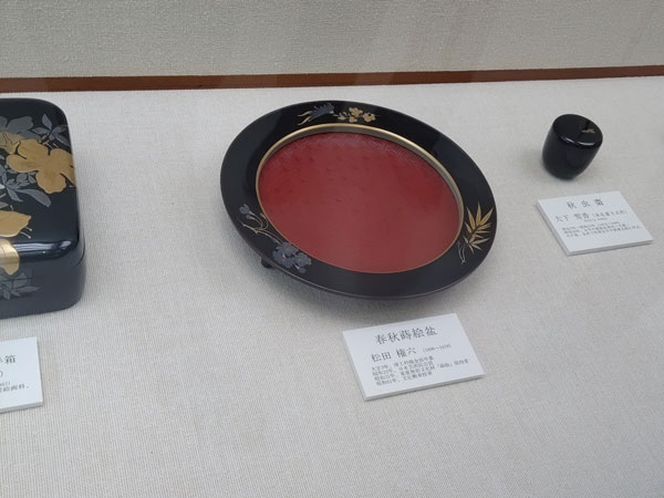 全て母校の卒業生の作品を中心に収蔵され、人間国宝、文化勲章受章者で東京芸大の教授を務めた、近代漆芸の巨匠、松田権六を始め、その他多くの人間国宝級の作品を含む、絵画・彫刻・陶芸・書道など、素晴らしい作品群に、「おどろきの」の感情を隠せませんでした。